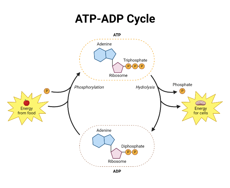 To understand what that means, you need a brief word on ATP — adenosine triphosphate — which is essentially your cells' energy currency. Imagine every cellular action, from a muscle contraction to a neuron firing a thought, as a purchase. ATP is the money that funds it. When ATP makes that purchase, it breaks a chemical bond, loses a phosphate group, and becomes ADP (adenosine diphosphate) — a spent bill, if you like. The problem is that ATP stores run out fast during intense activity. You might deplete them in seconds.