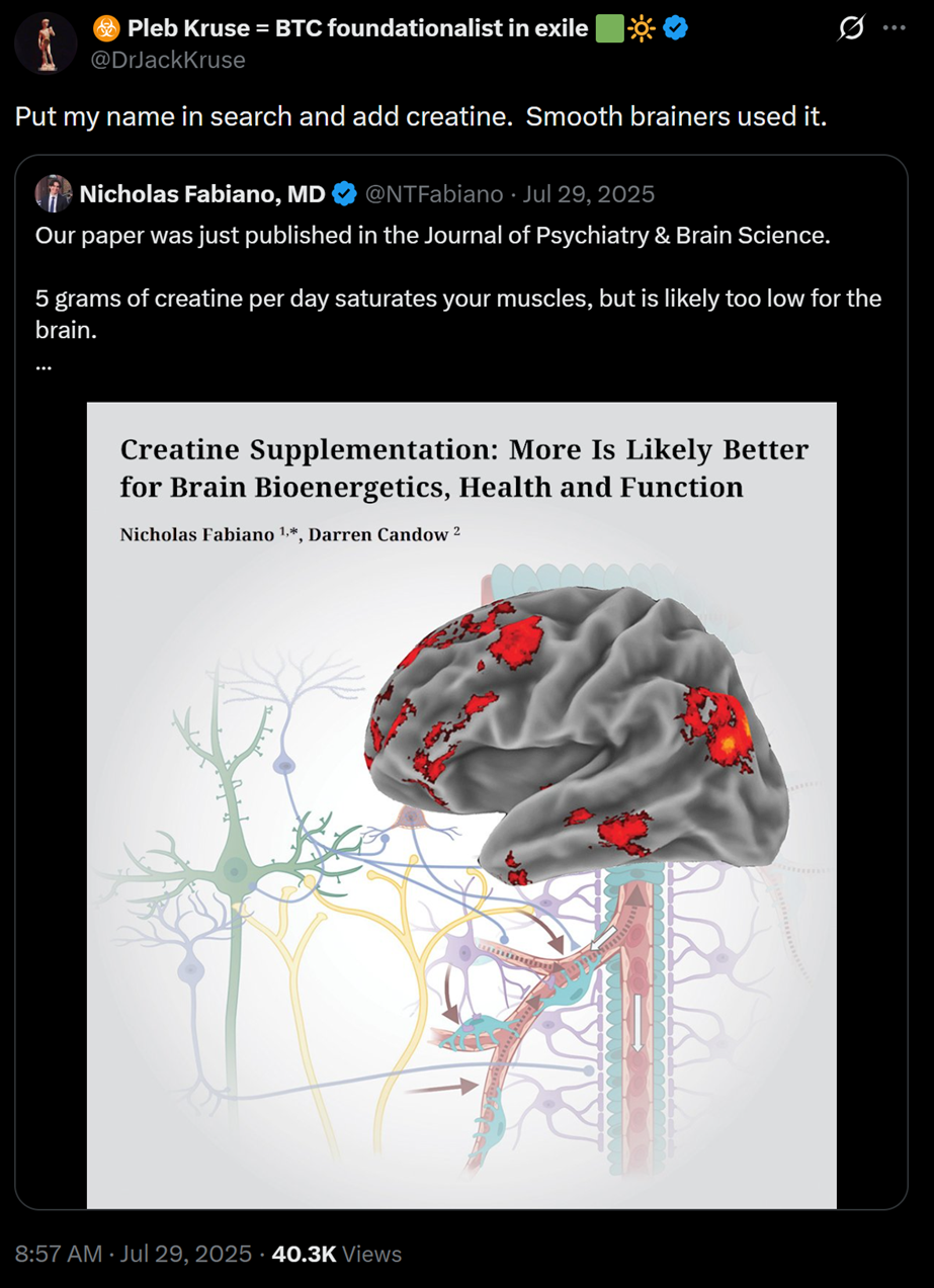 Enter Dr. Kruse: "Creatine Is for Smooth Brainers"