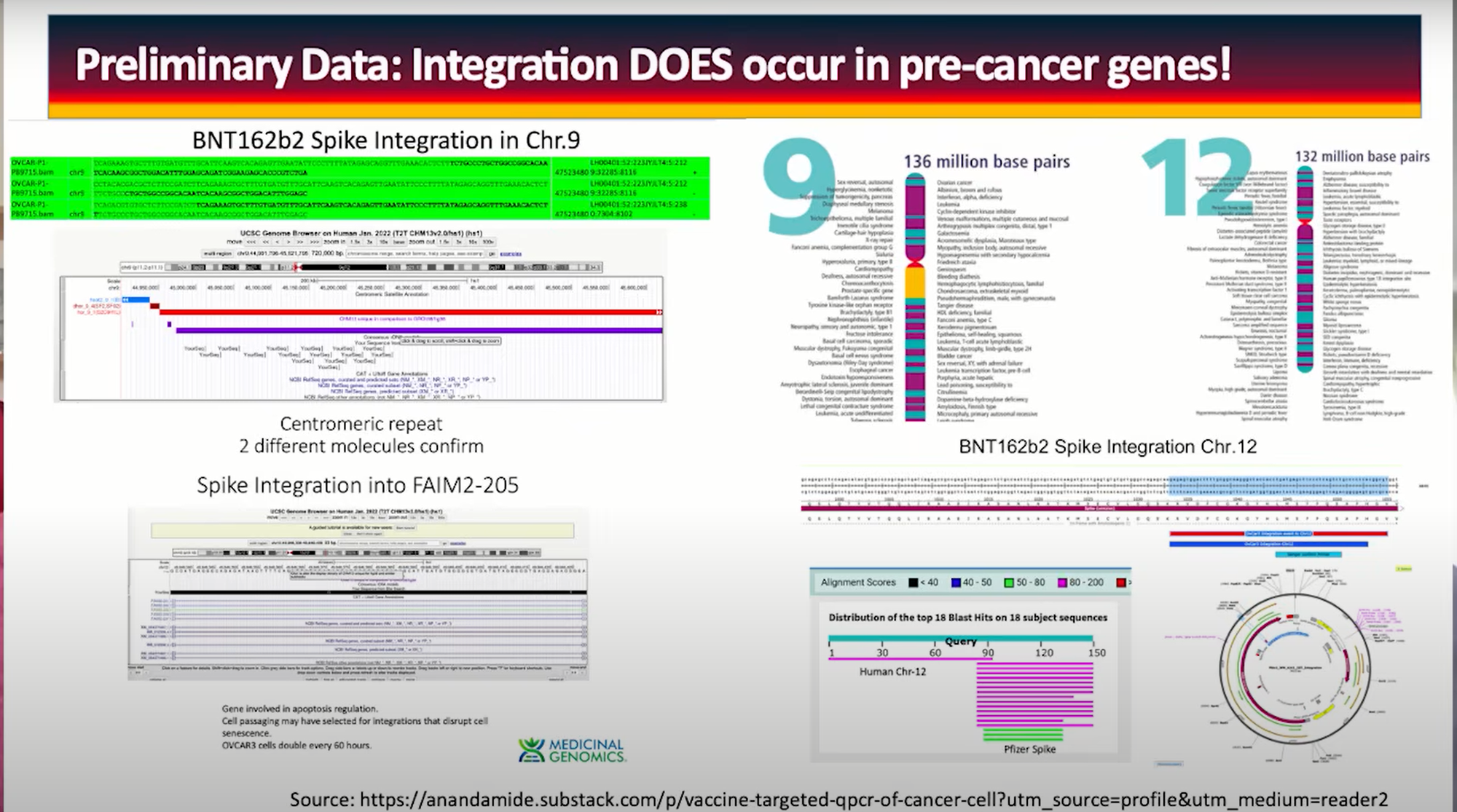 Dr. Speicher's work, building on Kevin McKernan's initial findings, provides definitive proof... As Speicher noted, referencing McKernan's research: "Kevin's work in the past six months has shown...if you take cells in cell culture...and sequence the cells, it found full-length Spike DNA pieces in chromosomes 9 and 12."
