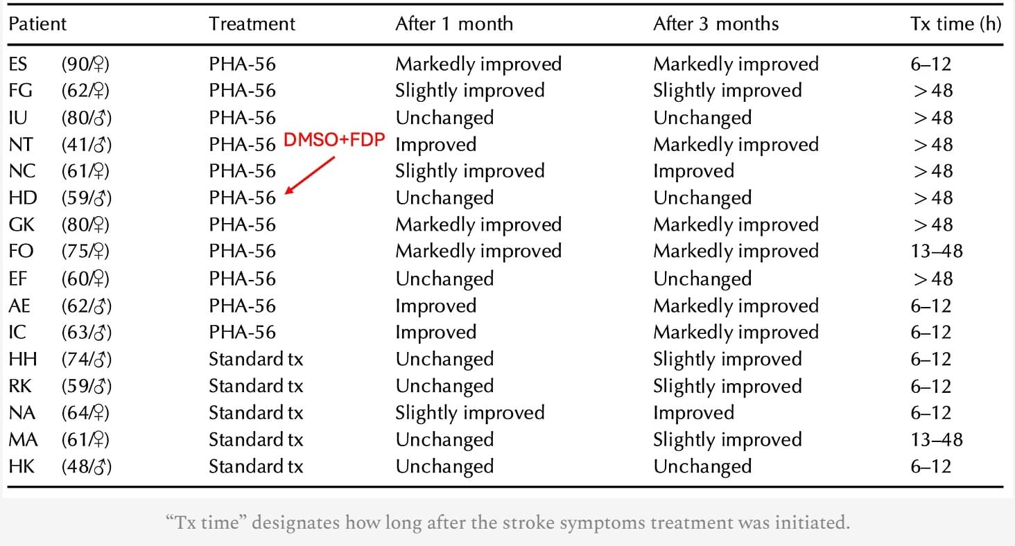 For Strokes: A 2002 clinical trial administered DMSO with fructose diphosphate (FDP - a metabolite cells convert to energy) intravenously twice daily to stroke patients within 12 hours of symptom onset. The results were remarkable - 63% of patients achieved 'improved' or 'markedly improved' neurological status, compared to only 20% receiving standard treatment three months later. Even more impressive: DMSO showed benefit even when given hours after the stroke, something conventional medicine considers impossible.