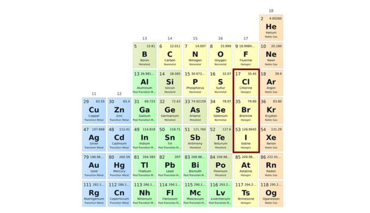 The halides—Group 17 on the periodic table—include iodine, chloride, bromide, and fluoride. They're similar in size and shape, which means they compete for the same receptors in your body.